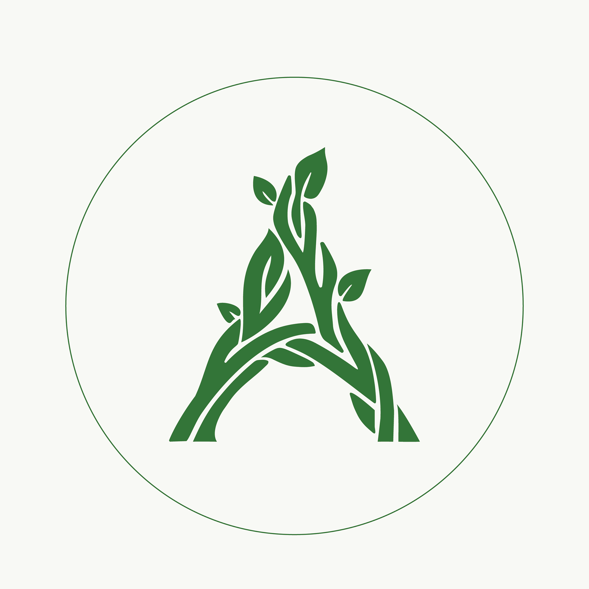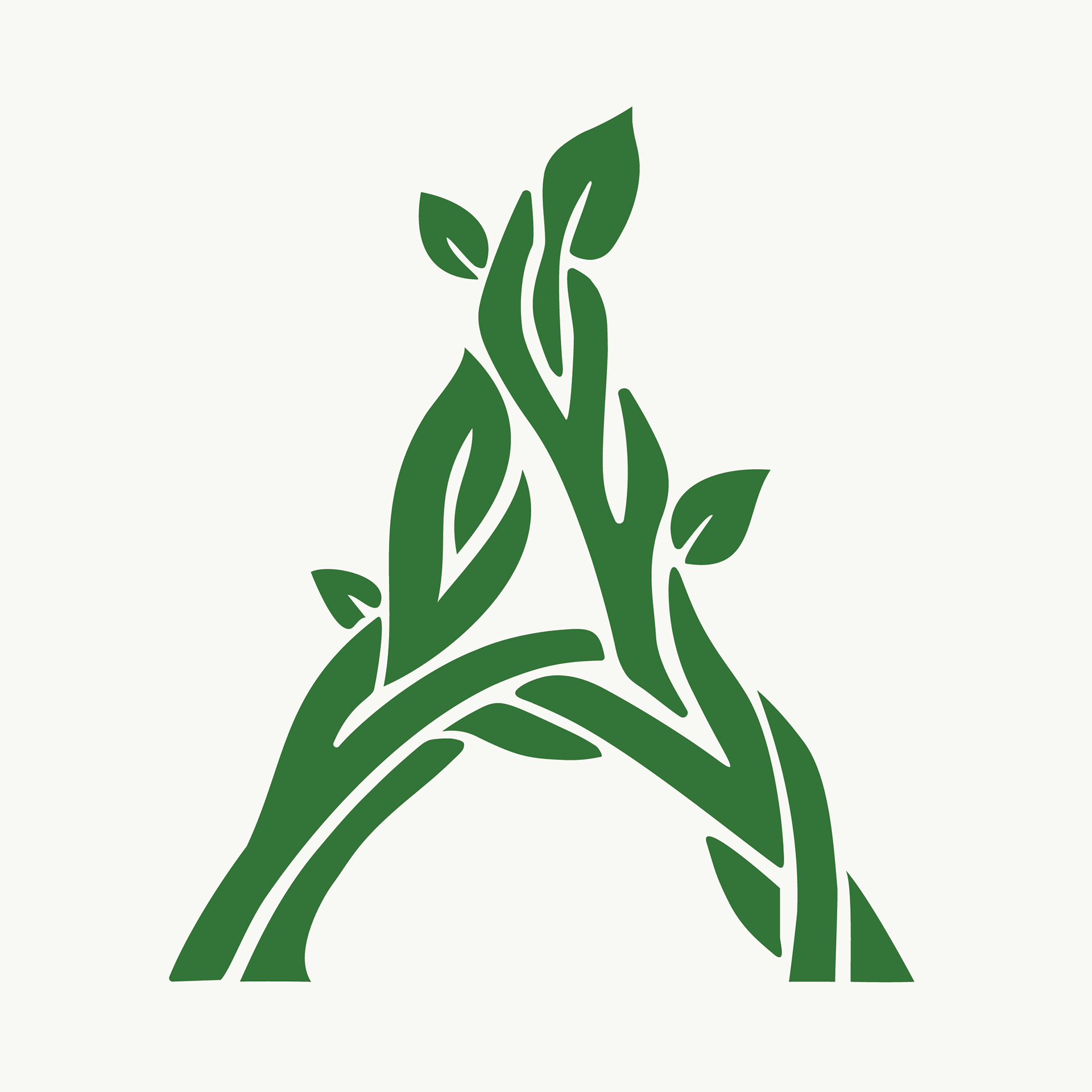 The logo centers on a custom letter “A” formed from organic vine shapes. This concept draws from the biblical imagery of a vine and branches, symbolizing spiritual connection, growth, and life in Christ. The flowing lines of the vines create a natural, living form that visually reinforces the idea of faith growing over time.